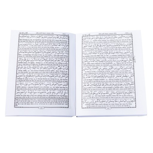 This is a pocket-sized Quran sharif published by Mina book house. It comes with Arabic Text, Bangla Transliteration, and Bangla Meaning.