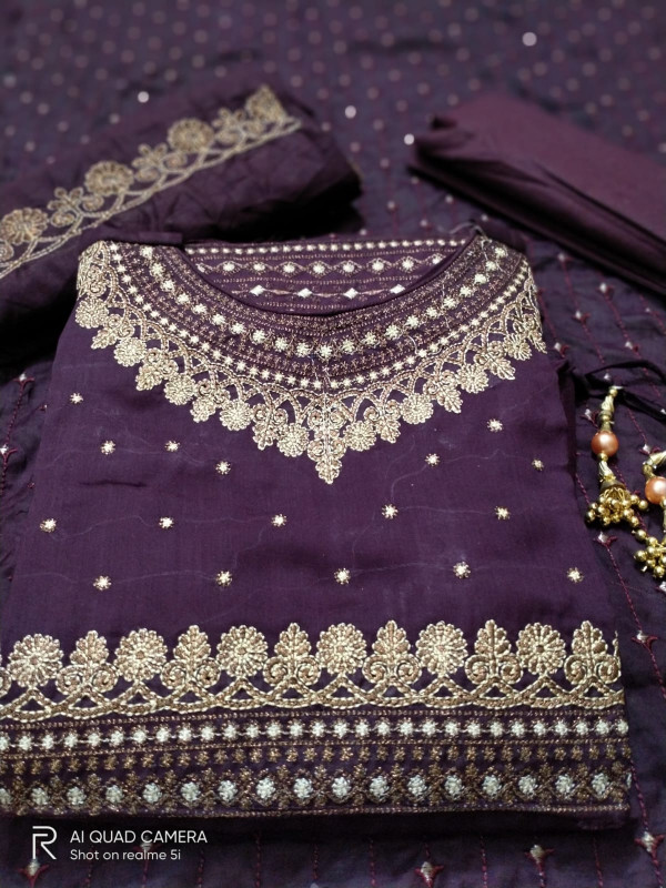ফুল বডি গ্লেজি কটনে গর্জিয়াস সারভোসকি স্টোন ওয়ার্ক করা টু-পিস unstitch.